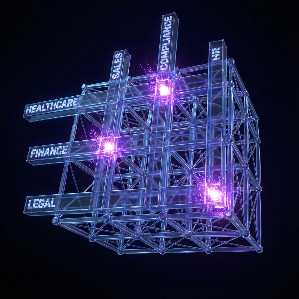Imagine a grid where the rows are industries (Healthcare, Finance, Construction) and the columns are job functions (Sales, Legal, Compliance, HR). This creates thousands of cells, each representing a specific type of knowledge work.